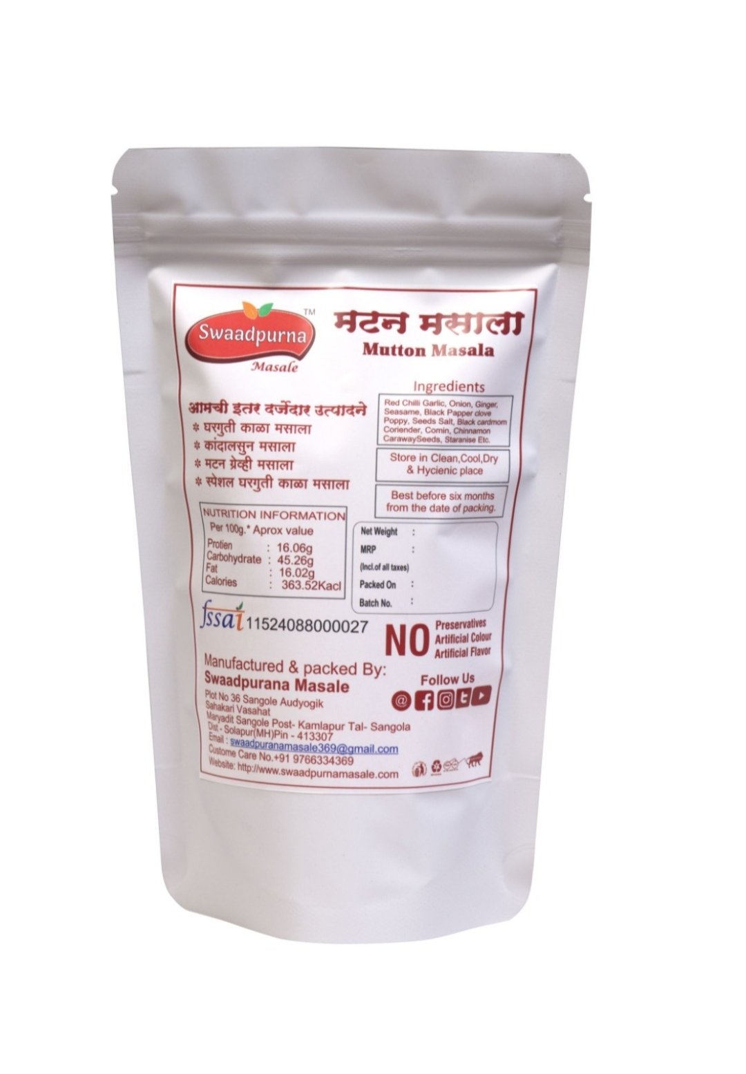 * By choosing R N’s Swaadpurna Mutton Masala made in pounding machine, you are choosing a healthy and natural option for your family, which guarantees the best quality, taste, and aroma in every dish.