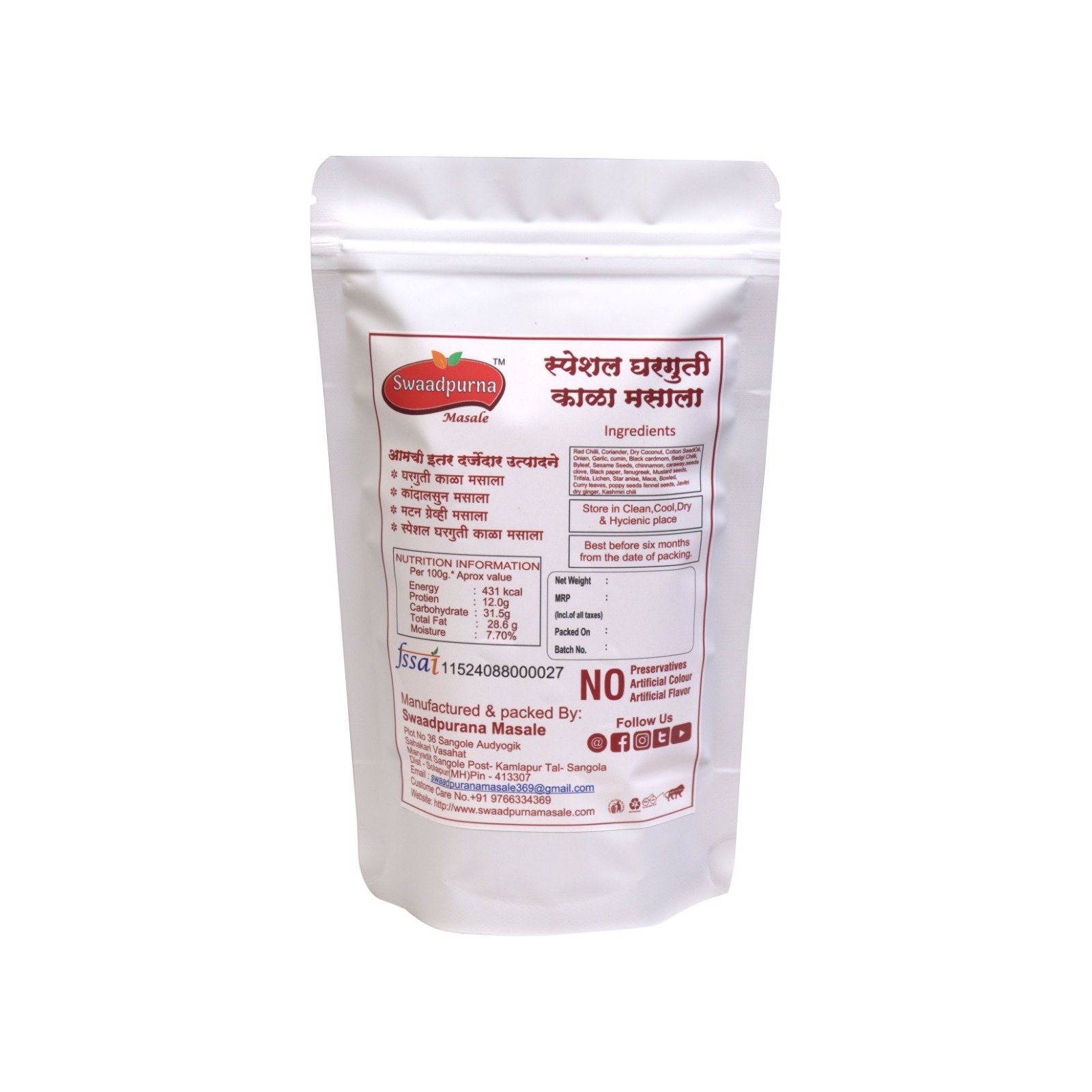* Authentic Maharashtrian Special Kala Masala Traditional Homemade blend for rich taste & dark colour.